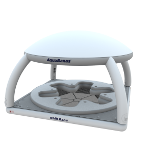 The Chill Bana™ is one of the most recent products to join the AquaBanas family. This exciting new inflatable is designed to connect to any AquaBanas module, allows up to 6 adults to sit in the water with back rests for proper ergonomic positioning, and drink holders. Add an optional tent (BT-120) to keep cool in the shade while relaxing in the water and enjoying your favorite beverage. This module can easily connect to any of the AquaBanas components to give you some additional recreation area on the water.