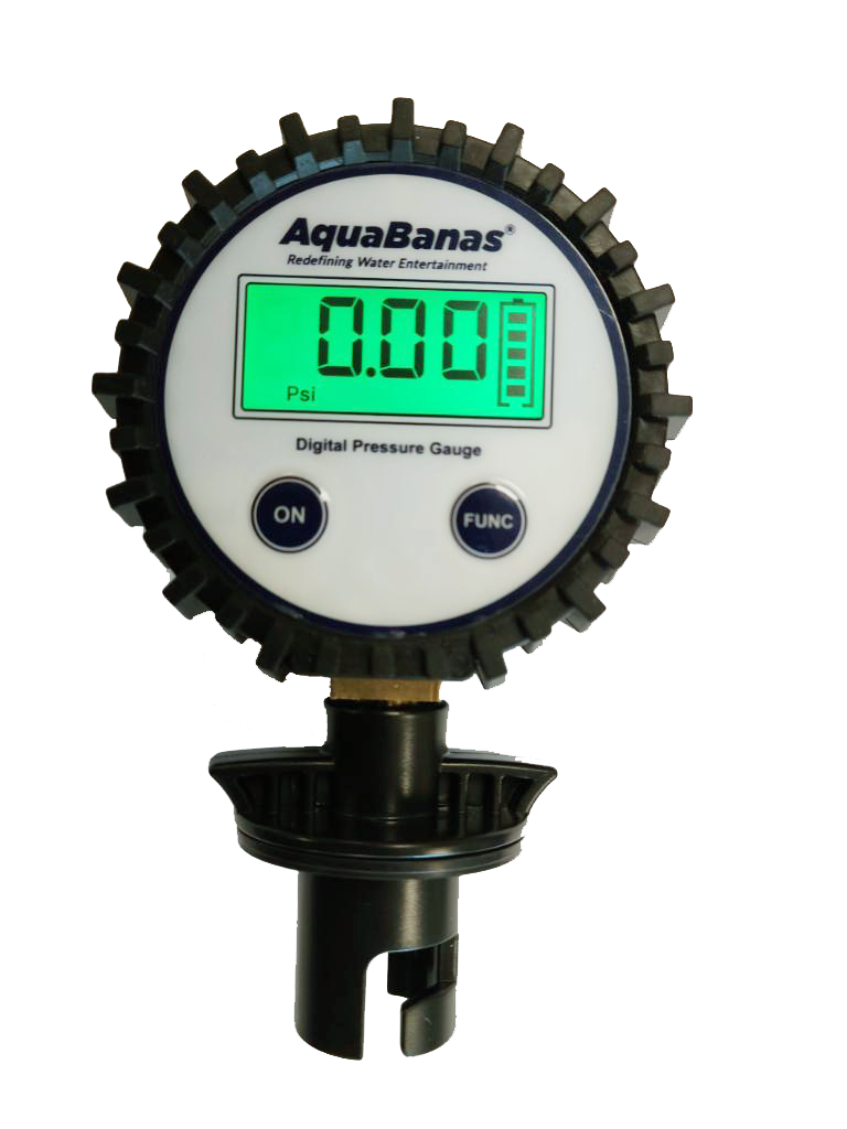 Spec SheetThe AquaBanas digital pressure gauge is necessary for efficient monitoring of the pressure in each air chamber. The gauge has 4 pressure modes, is easy to use and will accurately check up to 15psi.