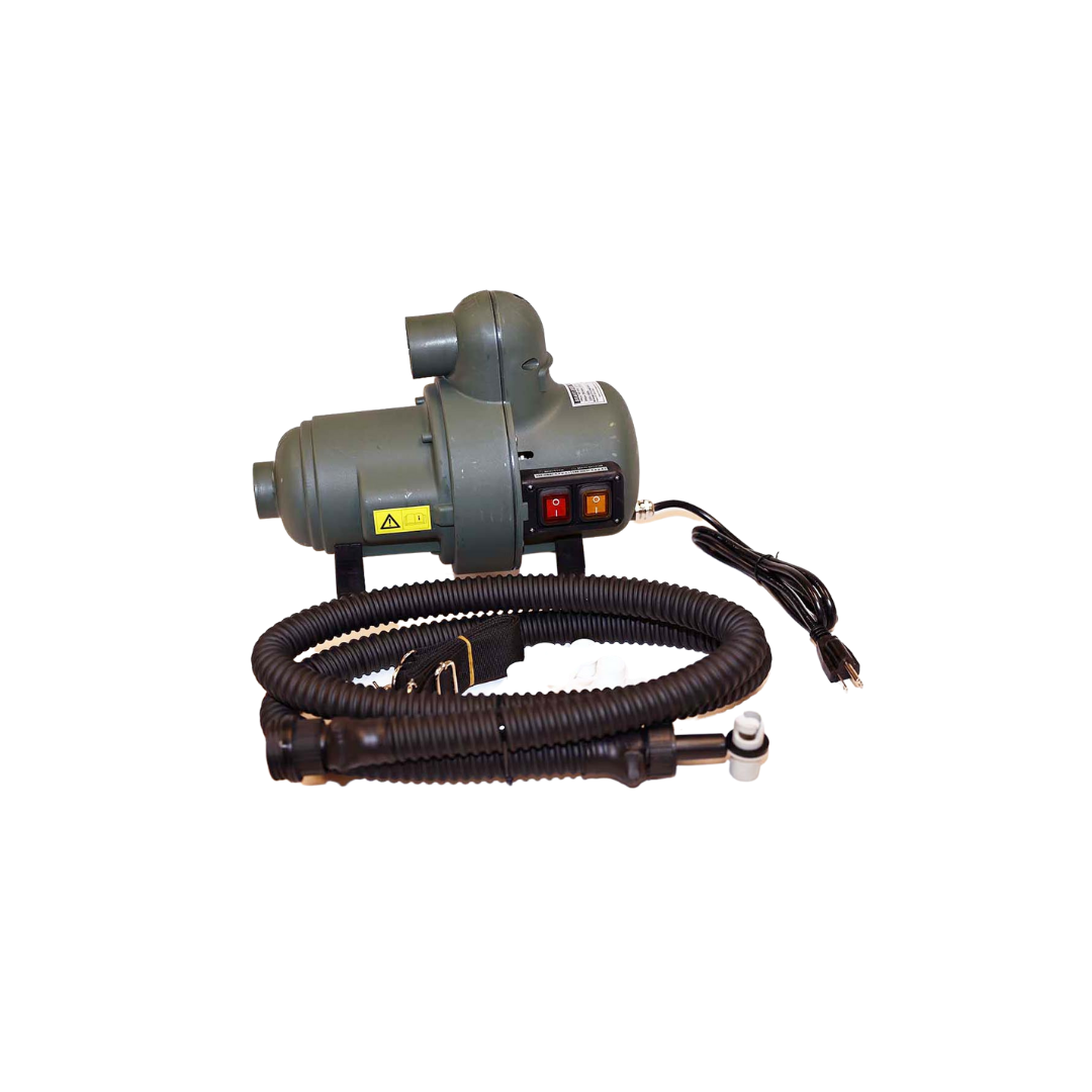 Bravo 2000 is a dual motor pump that puts out 2000 liters of air per minute and can generate up to 5.8psi of air pressure. Pump includes, 2 meter hose, adaptor, 5 fittings, and carry strap.